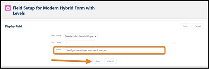 Enter a donor-facing label (recommended example): “See if your employer matches donations”
