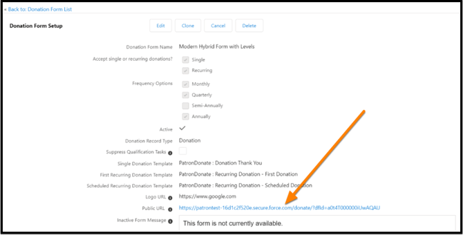 Open the Donation Forms tab in PatronManager.
