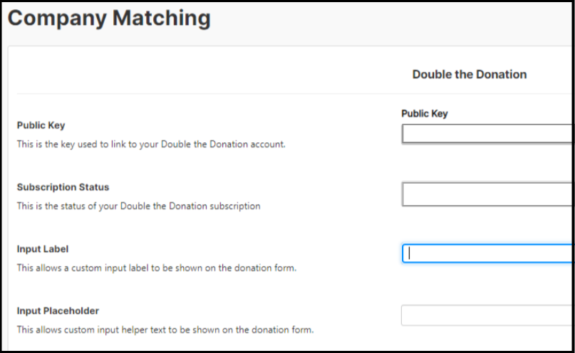 A: First, ensure you have an active Double the Donation Matching account. If you have confirmed that your matching module is active, ensure that you have copied and pasted your public API key and not your private API key from your Double the Donation Matching account. If you're still experiencing issues, contact support@doublethedonation for assistance.