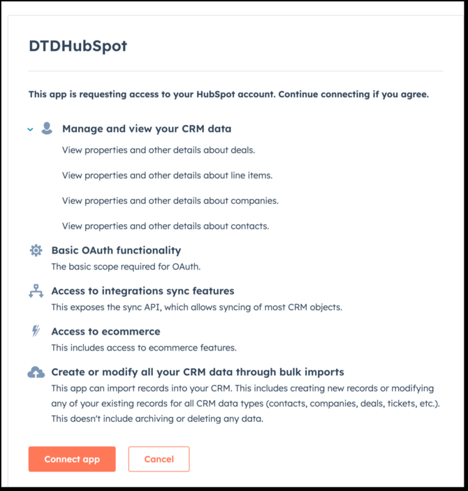 Click Connect App to approve permissions.