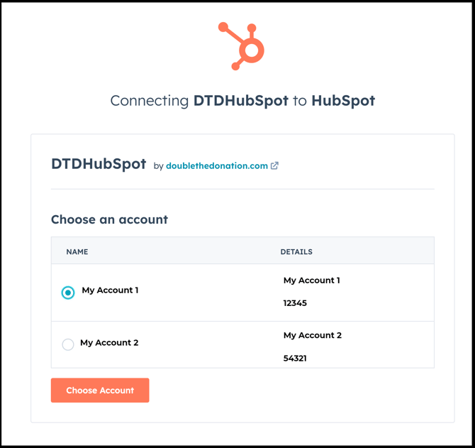 Select the HubSpot account you want to connect, then click Choose Account.