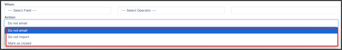 Q: I selected "Donor email address" as my field, "is" as my operator, and "Do not email" as my action. Why am I seeing a help message?