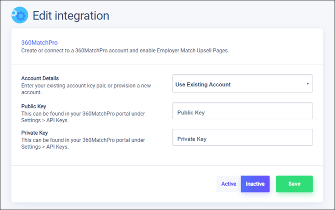 Enter your Public API Key and Private API Key (found under Double the Donation Matching → Settings → API Keys).