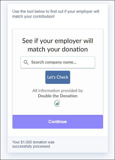 Double the Donation is the industry-leading matching gifts automation solution for nonprofits and educational institutions to identify more matching gift revenue opportunities and drive more matches to completion. You’ll need a Double the Donation account to activate the matching gift functionality within this partner platform. Not a Double the Donation client? Schedule a demo at https://doublethedonation.com/demo-request/.